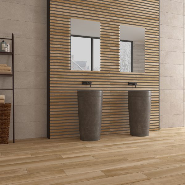 GP RLV Norway Straw 60×120 je gres porculanska pločica prve klase s prefinjenim mat reljefnim uzorkom u prirodnoj, svijetloj nijansi koja podsjeća na teksturu svijetlog drveta ili slame. Njezin veliki format 60×120 cm i retificirani rubovi omogućuju ugradnju s minimalnim fugama, stvarajući ujednačen i elegantan završetak prostora.